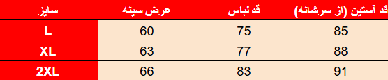 جدول سایز‌بندی: