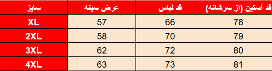 جدول سایزبندی: