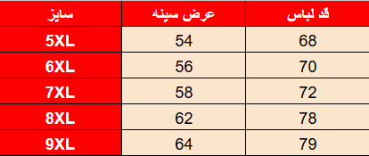 جدول سایزبندی:
