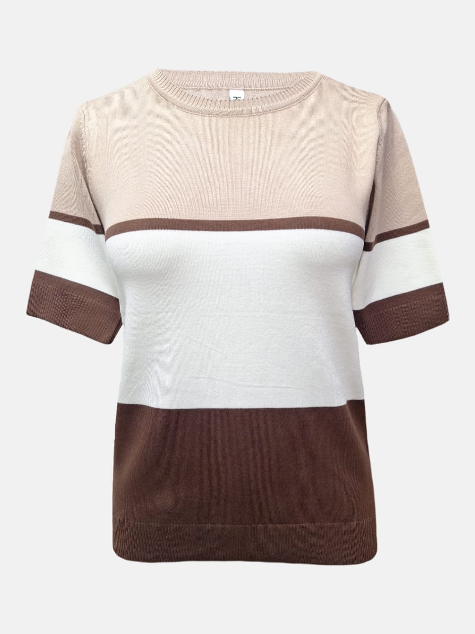 🧣یقه گرد، آستین کوتاه، پارچه بافته شده طرح افقی 3رنگ