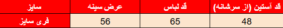 جدول سایز‌بندی: