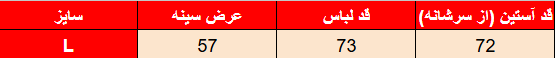 جدول سایزبندی: