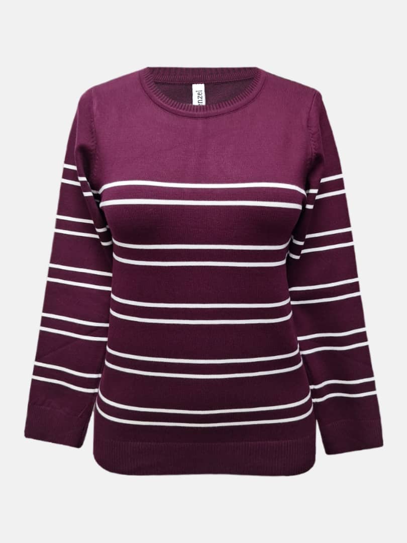 🧣یقه گرد، آستین بلند، پارچه بافته شده طرح راهراه