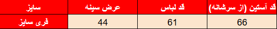 جدول سایزبندی: