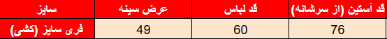 جدول سایز‌بندی: