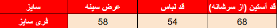 • آستین بلند دارای کشباف در قسمت مچ و پایین لباس