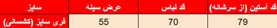 جدول سایز‌بندی: