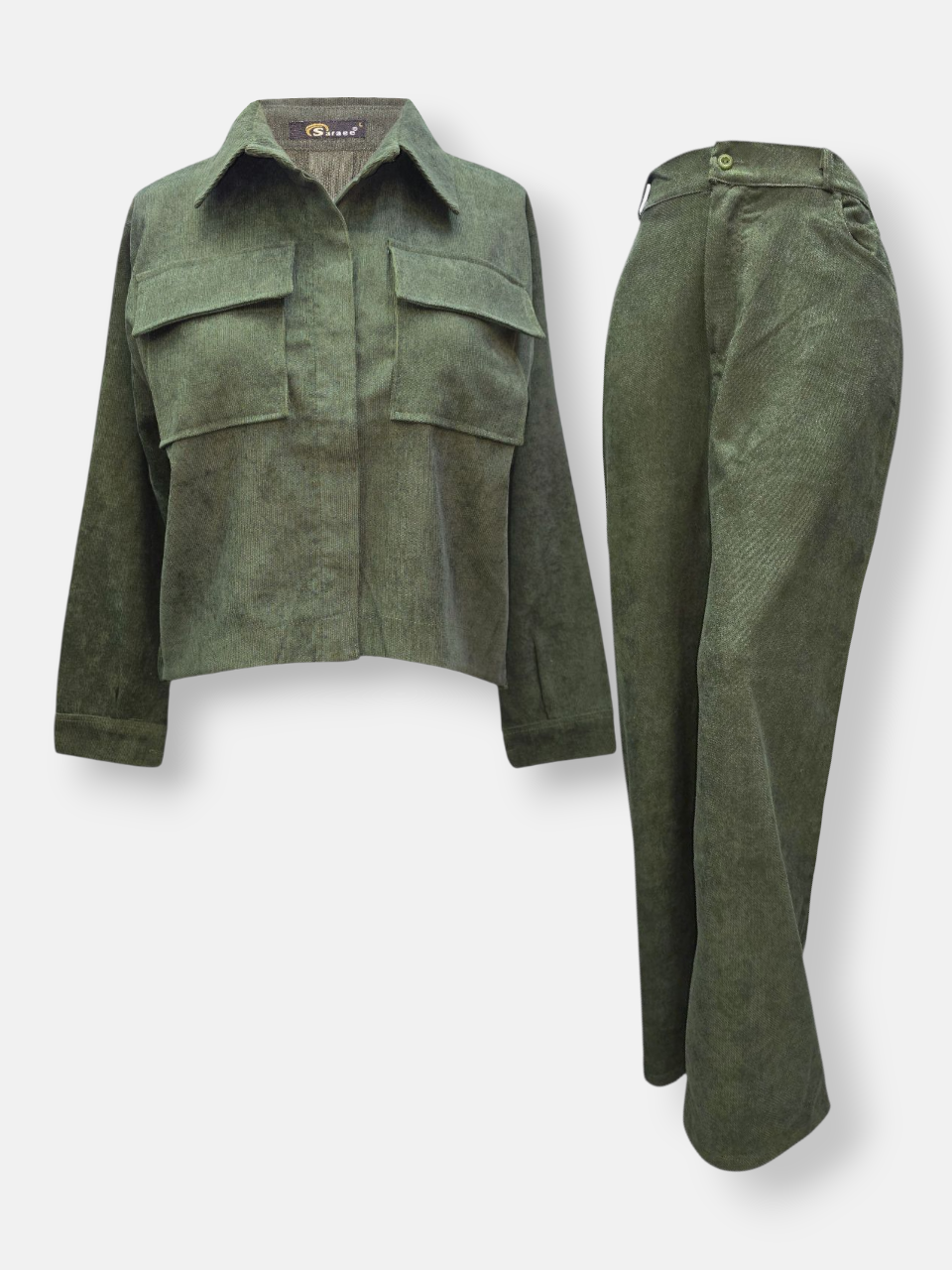 ست زنانه شومیز شلوار مخمل کبریتی AV2494